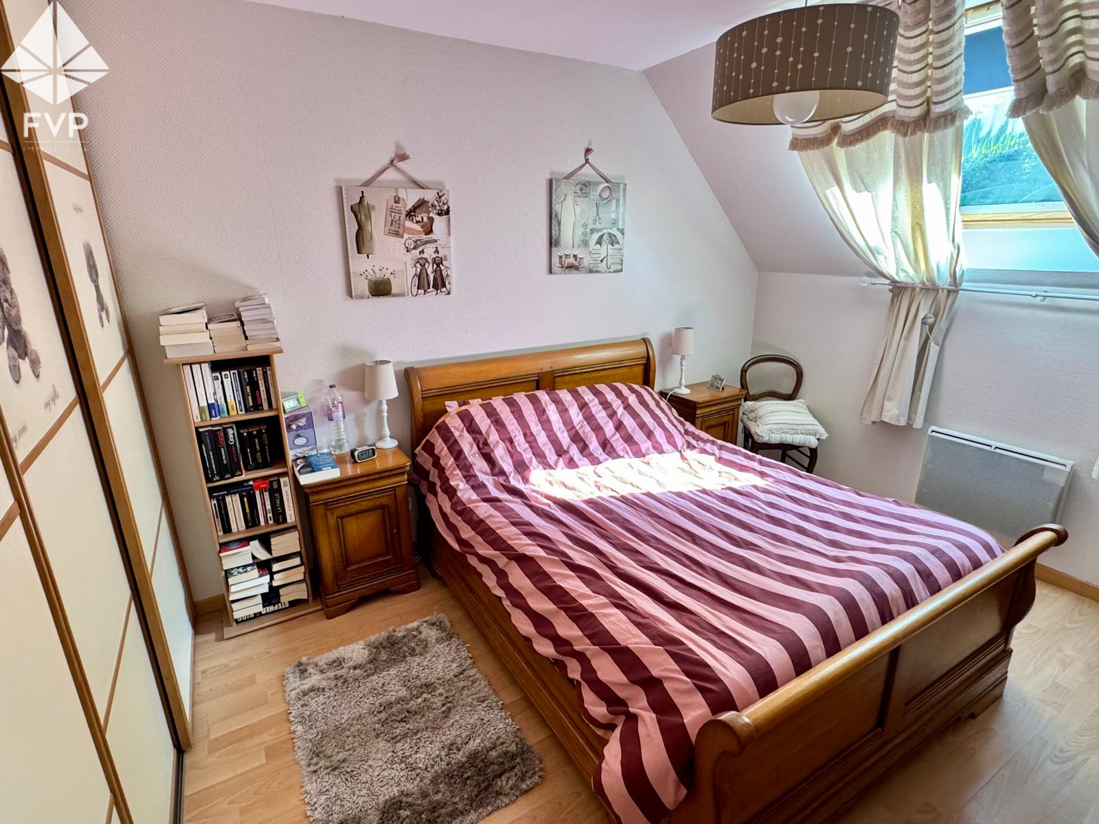 A l'étage, un grand palier dessert une salle de bain spacieuse et lumineuse, ainsi que trois chambres de 11m², 12,6m² et 17,1m².