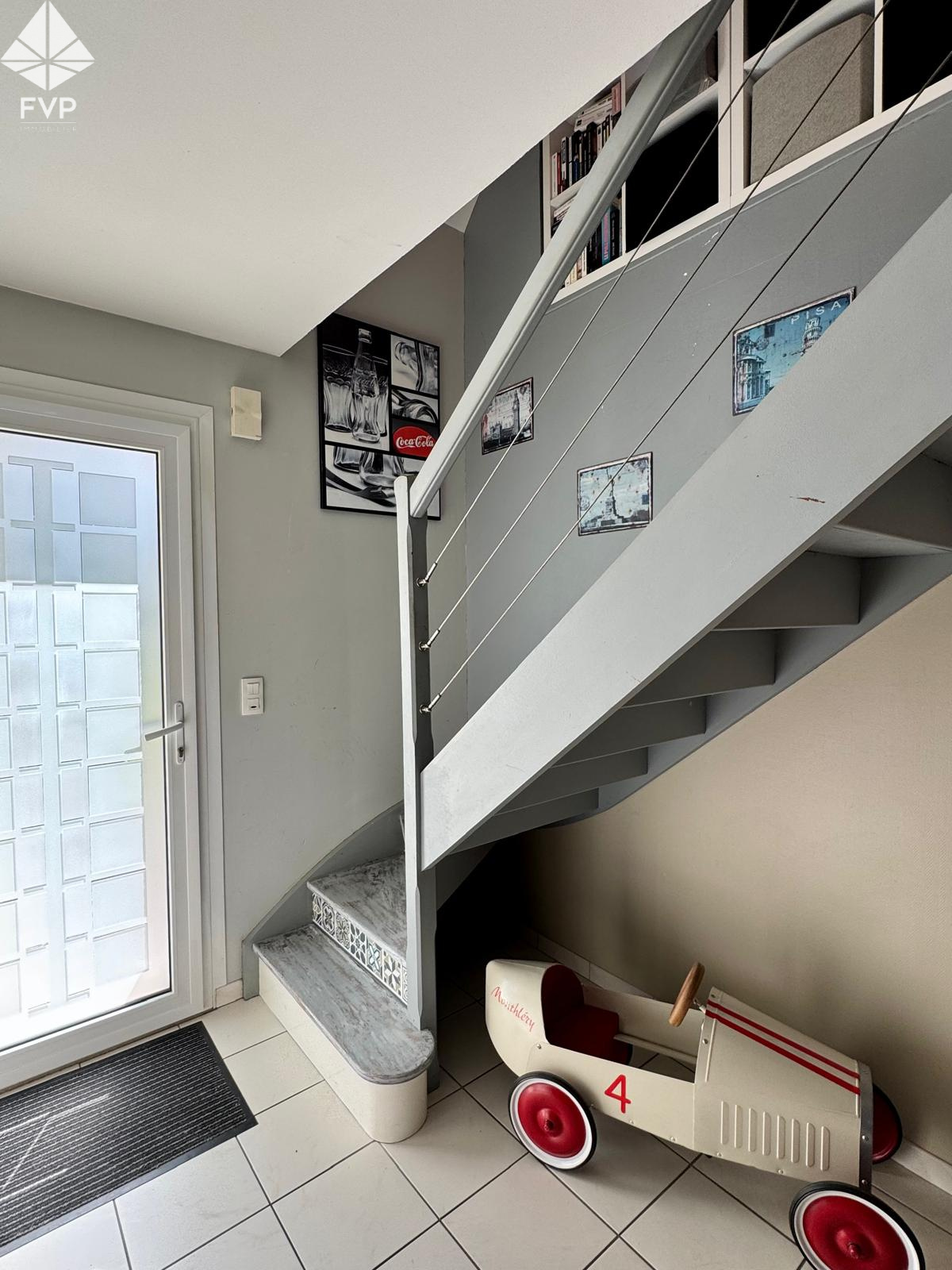 Au rez-de-chaussée, une grande entrée donne accès à une cuisine ouverte bien équipée, une salle à manger lumineuse, et un grand salon séjour d'environ 40 m² et coin bureau / lecture.