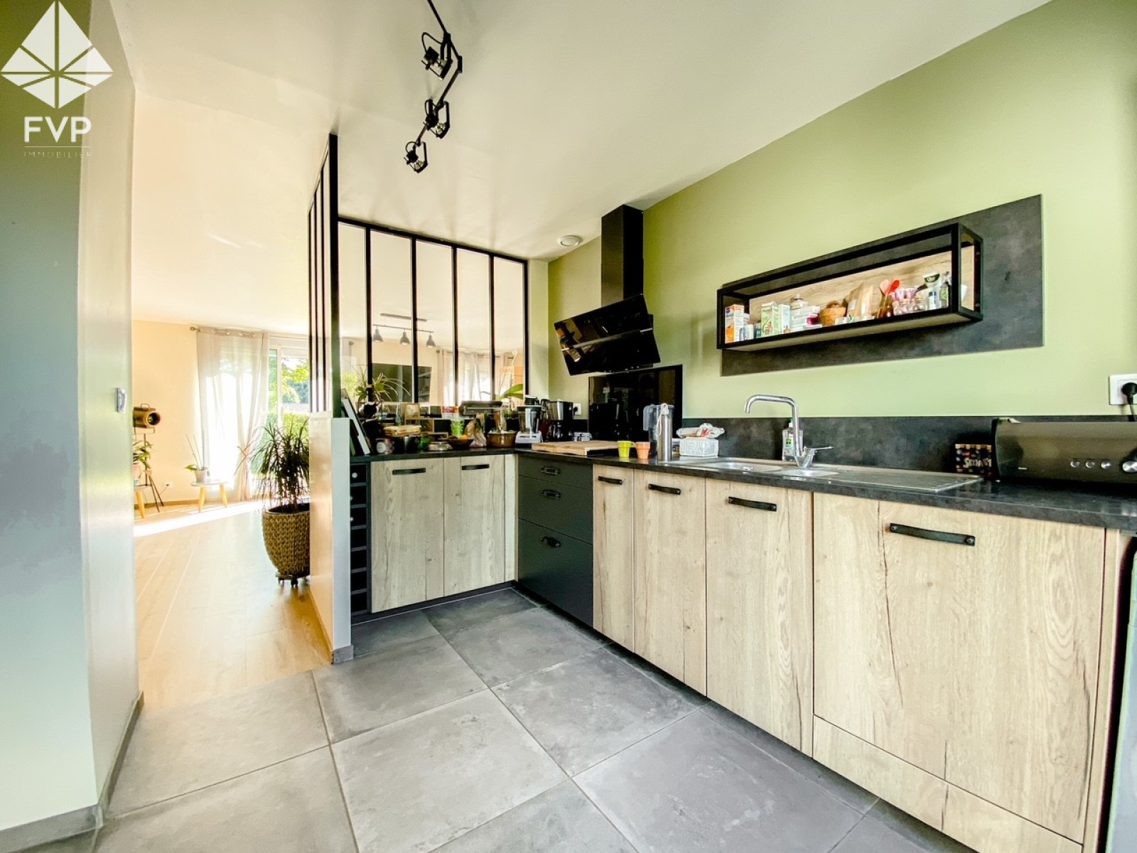 Cuisine récente (2022) A+E, sol carrelage, verriere sur séjour/salon, 1 porte fenêtre expo Nord