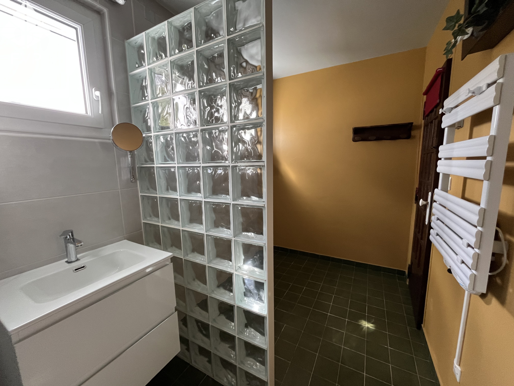La maison se compose, au rez-de-chaussée, d’une entrée, d’un dégagement, d’une cuisine aménagée et équipée avec poêle a granules ainsi que d’un séjour-salon lumineux avec cheminée a insert d’une surface de 39 m², offrant une agréable vue sur la vallée. Vous y trouverez également une chambre, une salle de douche moderne avec douche à l’italienne et un WC indépendant.
